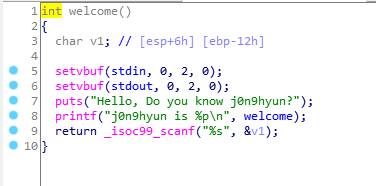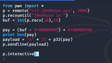 받아놓은 주소에서 welcome함수의 오프셋을 빼고 j0n9hyun함수의 오프셋을 더하면 된다.
